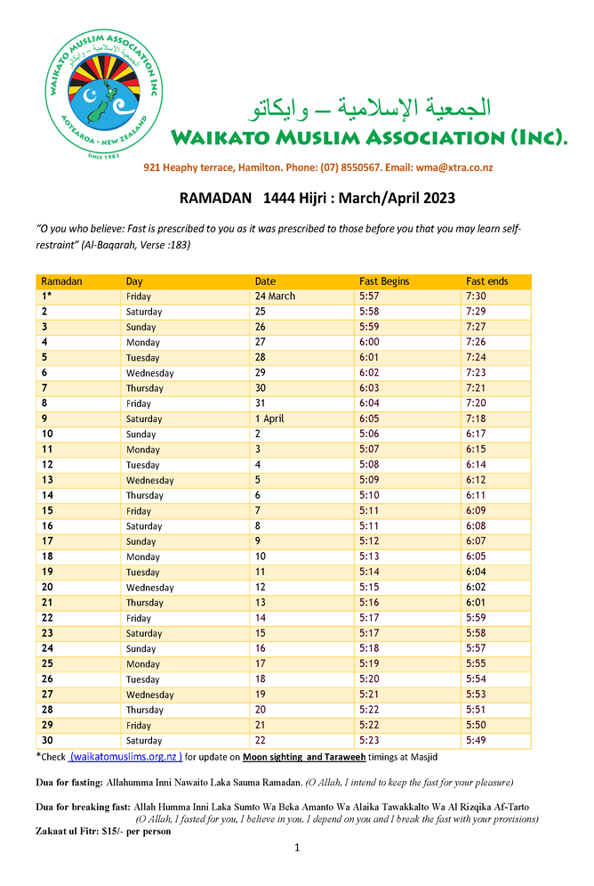 Above is the following timetable for this year's Ramadan along with other relative information stated below.