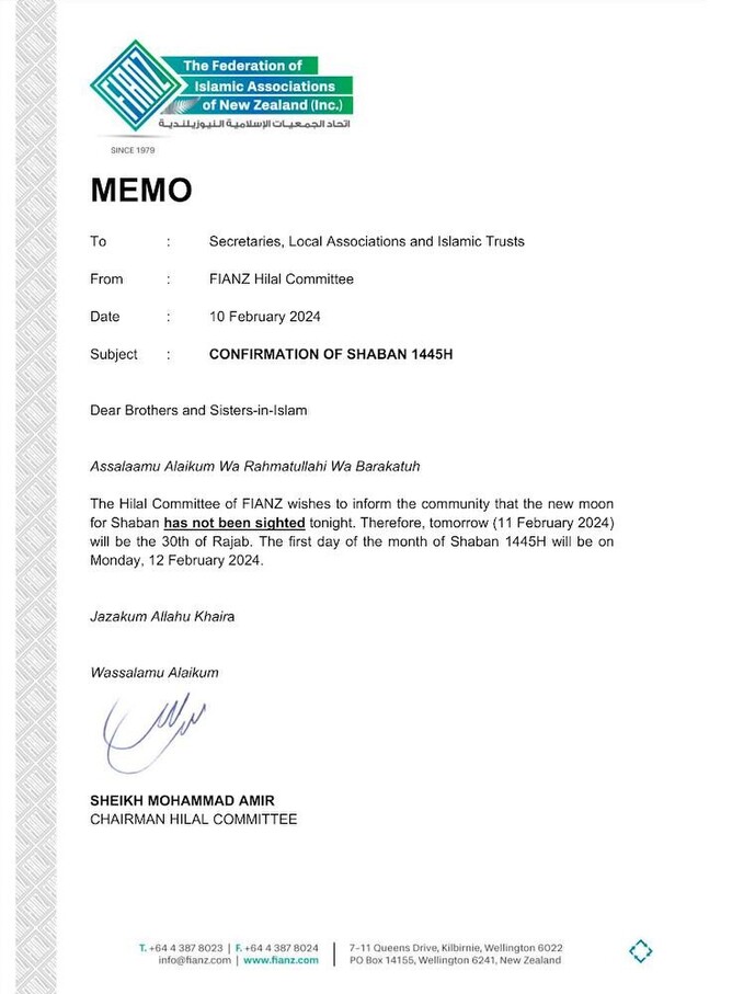 Confirmation of the Month of Shaban 1445H