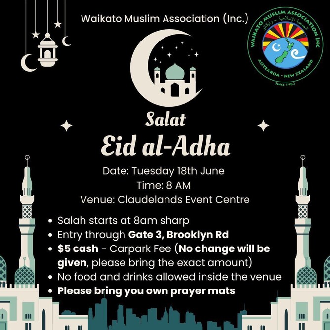 Inshallah this years Eid ul-Adha Salah will be taking place at Claudelands Event Centre Exhibition Halls A & B.