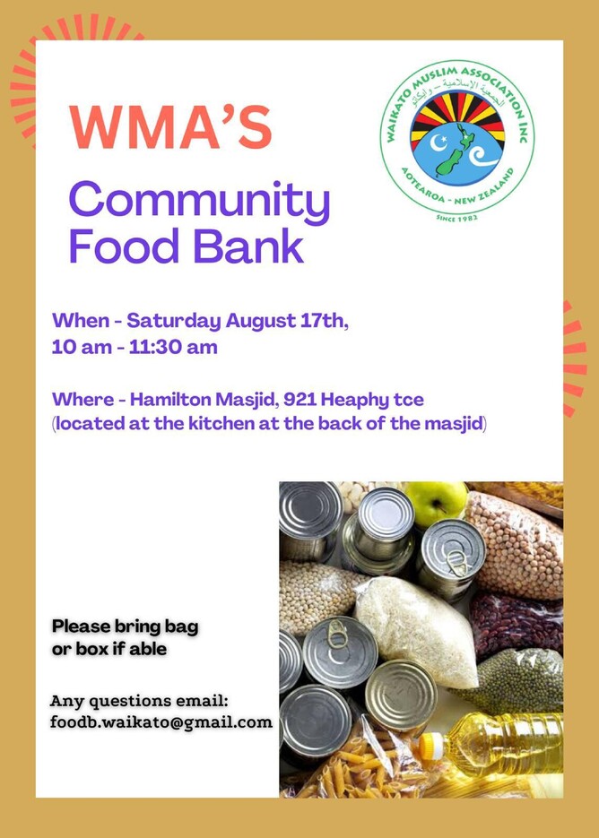 Inshallah we will be distributing food again on Saturday 17th August from 9:30 am to 11:30 am at Hamilton Masjid, 921 Heaphy Terrace, Claudelands.
