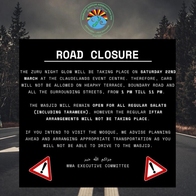 Please plan ahead if you are wanting to come to the masjid, as driving there will not be possible during this time.πΆββοΈπ²π