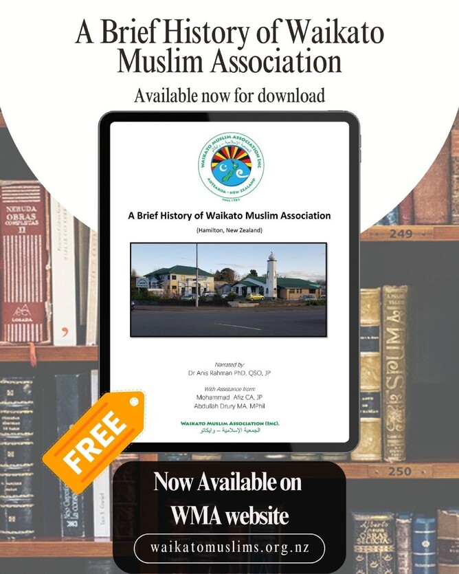 We are excited to announce the upcoming release of "A Brief History of Waikato Muslim Association" (Hamilton, New Zealand)! Narrated by Dr. Anis Rahman PhD, QSO, JP. With assistance from Mohammad Ali CA, JP and Abdullah Drury MA, MPhil The book will be now available for FREE on our website on the day of Eid, Insha Allah.