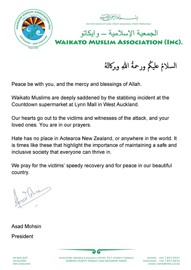 Waikato Muslims' heart goes out to victims of West Auckland stabbing
