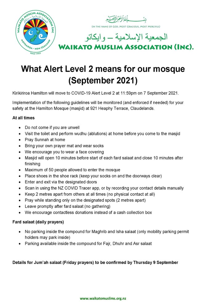 Hamilton Mosque reopens tomorrow under Alert Level 2 - what you need to know