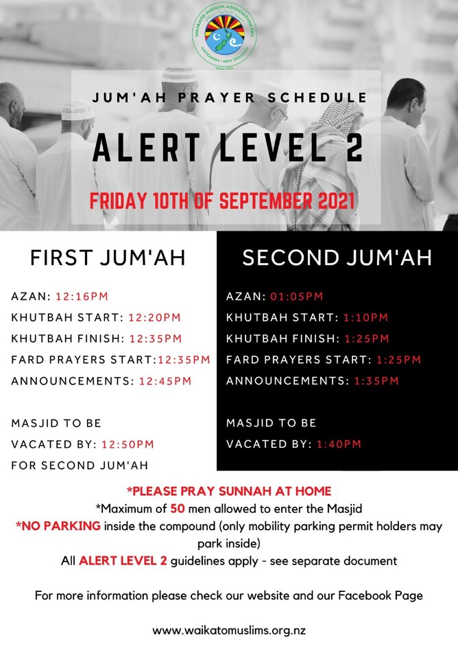 Jum'ah Prayer Schedule Alert Level 2 Friday 10 September 2021