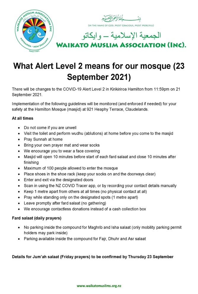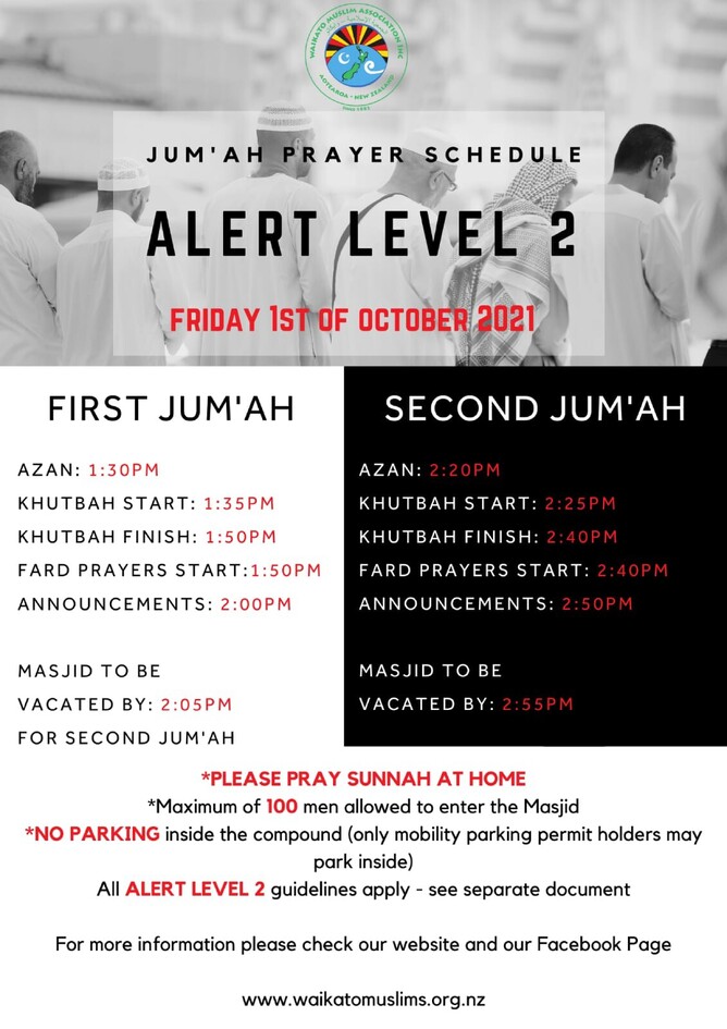 Jum'ah Prayer Schedule Alert Level 2 Friday 1 October 2021